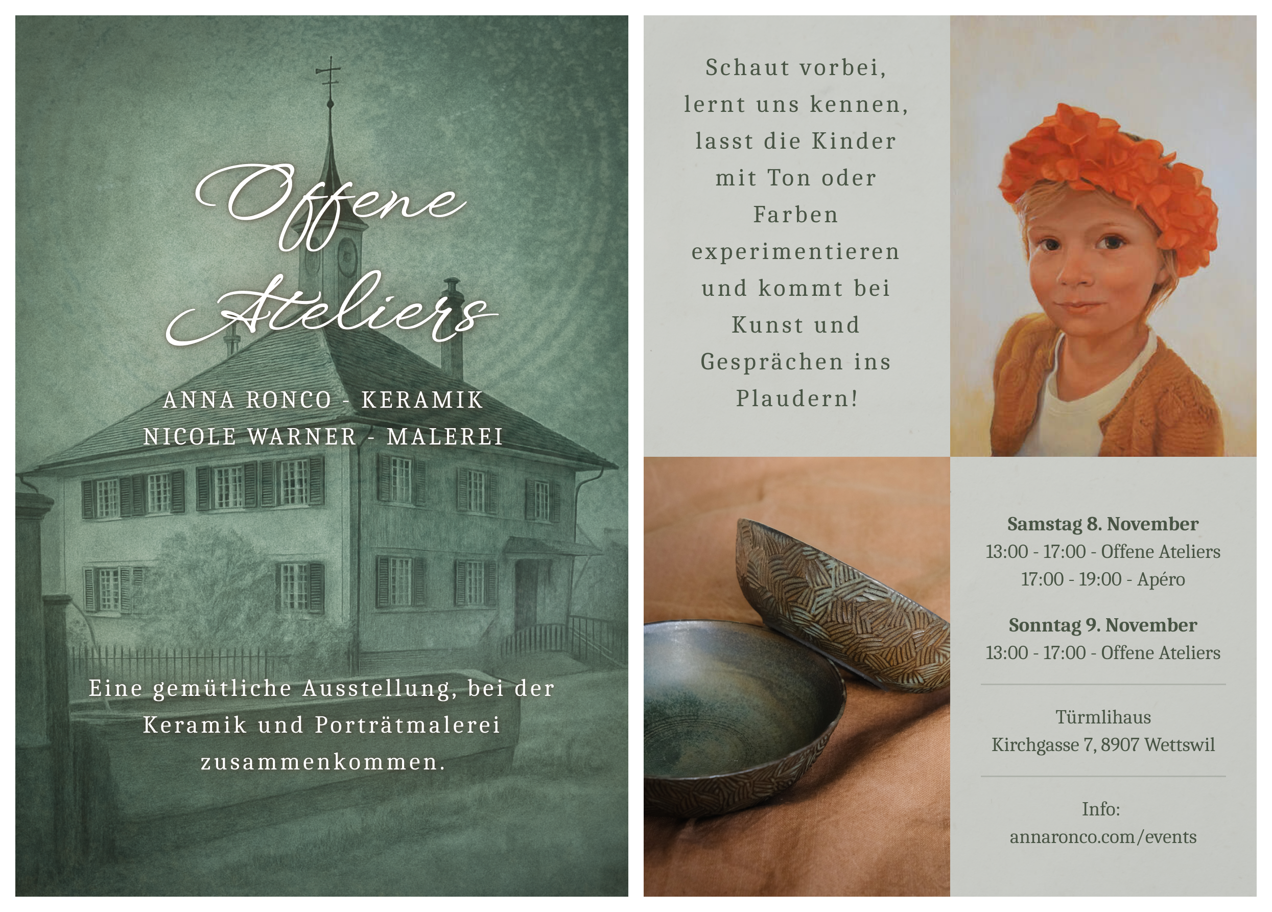 You’re warmly invited to step into an intimate space where clay and canvas meet. This private exhibition brings together handcrafted ceramics and oil portraiture, shown in a homely, informal setting.